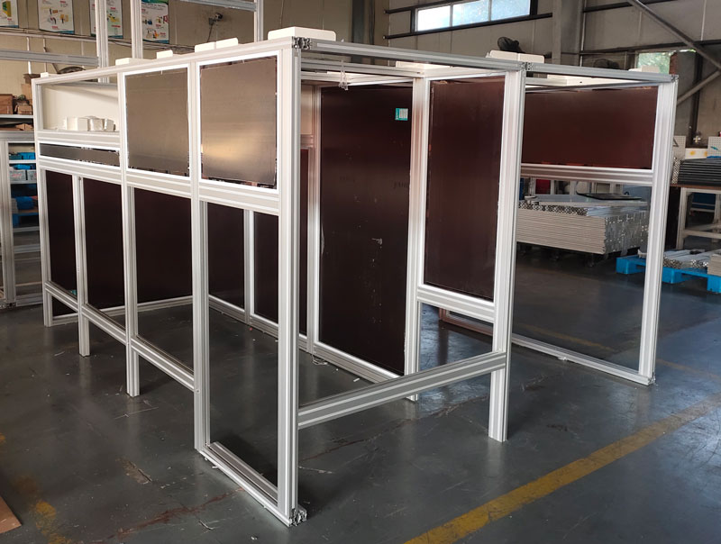 鋁合金設備外框安全防護罩適用于智能工廠車間中各類自動化生產設備,機器人,沖床等設備四周安全防護。部分區(qū)域會安裝門或留出通道便于貨物進出和人員檢修。設備外框安全防護罩,不僅可以按現(xiàn)場的需求進行各種定制,同時也因工業(yè)鋁型材的品種及連接方式多樣性。使之成本更低,靈活快捷的組裝是現(xiàn)在數據化工廠建設的基礎首選。