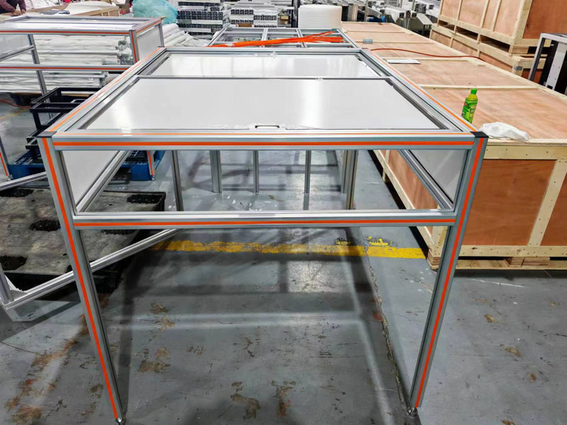 鋁型材防護罩是一種以工業(yè)鋁型材為設備外罩外殼,多見于各種非標機械設備的外罩,各種輸送線流水線外罩,大型潔凈棚外罩,焊房大型護罩等,能起到區(qū)域隔離,靜音防塵,保護設備及生產(chǎn)人員安全。鋁型材制作的防塵罩的樣式有很多,有些是密封的,可以起到隔離噪音的作用,凈化車間環(huán)境。有些是帶有開關門的,不僅可以起到防塵的作用,而且還利于后期維修工作。亞克力板也有透明的,茶色,紅色等顏色可以選擇。